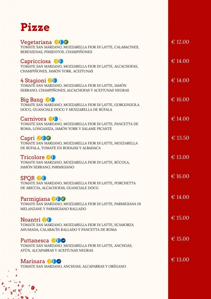 nuestro menu Homenuestro menu ANTIPASTI+ PASTA Y HAMBURGUESAS+ PIZZAS+ PIZZA CALZONE Y PIZZA BLANCA+ POSTRES Y ALERGENOS+